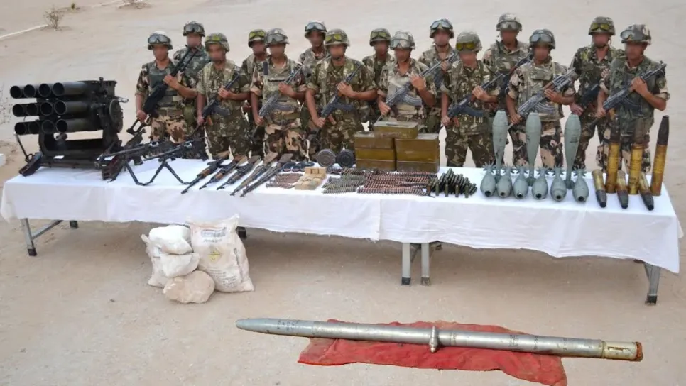 تمكنت قوات الجيش الوطني الشعبي صباح اليوم ببرج باجي مختار/ن.ع.6، من كشف مخبأ يحتوي على كمية معتبرة من الأسلحة والذخيرة، إثر دورية استطلاع قرب الحدود الجنوبية للبلاد، حسب ما جاء في بيان لوزارة الدفاع الوطني. مكنت هذه العملية النوعية من ضبط ما يلي: الأسلحة: - (01) منظومة إطلاق صواريخ 12 أنبوب عيار 107 ملم، - (01) صاروخ من نوع BM-21، - (02) بندقيتين رشاشتين من نوع FM، - (01) بندقية رشاشة من نوع RPK، - (02) مسدسين رشاشين من نوع كلاشنيكوف، - (02) بندقيتين تكراريتين. الذخيرة: - (09) قذائف هاون عيار 120 ملم، - (06) قذائف مدفع عيار 76 ملم، - (2960) طلقة من مختلف العيارات، - (02) مخزنين...