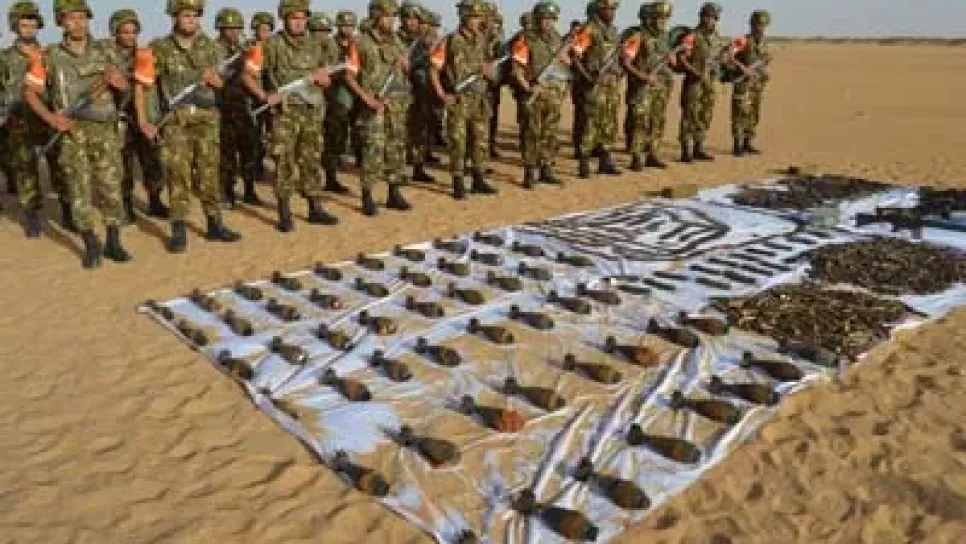 دمرت مفرزة للجیش الشعبي الوطني، أمس الأربعاء، مخبأ للأسلحة والذخیرة بالحدود الجزائرية المالیة بأدرار. و أورد بيان لوزارة الدفاع الوطني، اليوم الخميس، أنه تم استرجاع أسلحة تتمثل: رشاش ثقیل عیار 5.14 میلیمتر و بندقیتین رشاشتين من نوع (FMPK) و (FMDP) ، و8 مسدسات رشاشة من نوع كلاشنیكوف، و3 بنادق تكرارية و بندقیة نصف آلیة من نوع سیمونوف، و بندقیة من نوع ماس، و55 قذيفة خاصة بمدفع ھاون عیار 82 ملم، و 20 حشوة خاصة بمدفع ھاون عیار 82 ملم بالإضافة إلى 55 مخزن خاص بالمسدس الرشاش من نوع كلاشنیكوف، ومخزني ذخیرة للبندقیة ماس، و3 أشرطة ذخیرة للرشاش (FMPK)، و زيادة على هذا كمیة ضخمة من الذخ...