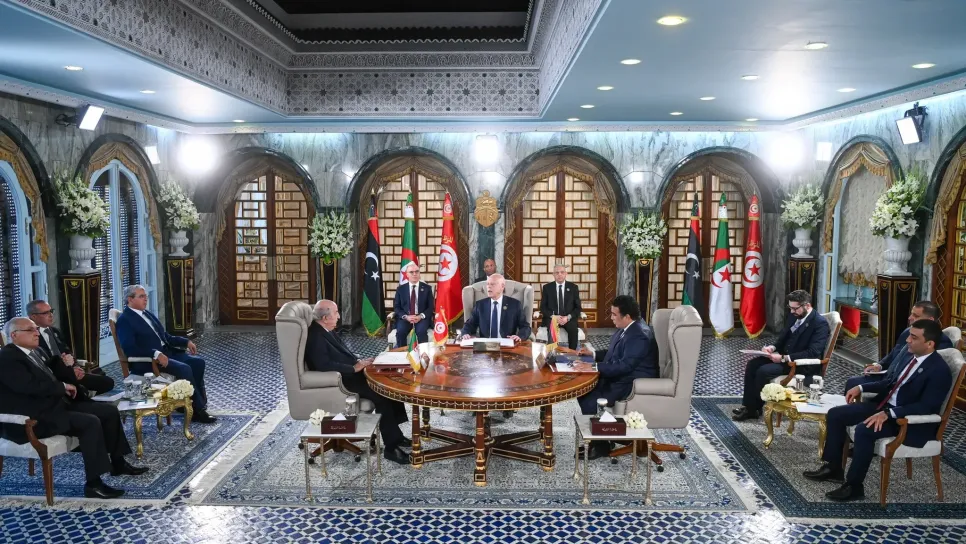 اختتمت، مساء اليوم الاثنين بقصر قرطاج بتونس، أشغال الاجتماع التشاوري الأول الذي جمع كل من رئيس الجمهورية، عبد المجيد تبون، ونظيره التونسي، قيس سعيد، ورئيس المجلس الرئاسي الليبي، محمد يونس المنفي. البيان الختامي: وكان رئيس الجمهورية قد وصل في وقت سابق اليوم إلى تونس العاصمة للمشاركة في هذا الاجتماع التشاوري الأول بدعوة من أخيه رئيس الجمهورية التونسية، قيس سعيد. ونشرت رئاسة الجمهورية فيديو للاجتماع: من جهتها، نشرت رئاسة الجمهورية التونسية صورا للاجتماع: