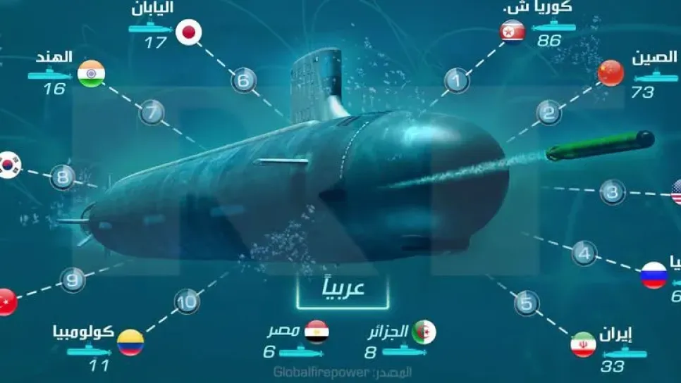 احتلت الجزائر المرتبة الأولى عربيا من حيث قوتها العسكرية تحت البحر، وقدم موقع “جي آف بي” المتخصص تصنيفا كشف فيه أن الجزائر تمتلك 8 غواصات قتالية تليها مصر بـ 6 غواصات، بينما احتلت كوريا الشمالية المرتبة الأولى عالميا بـ 86 غواصة تليها الصين بـ 73 و الولايات المتحدة الأمريكية بـ 66، حسب رسم أنفوغرافي لـ”روسيا اليوم” اختصر نتائج التصنيف.. وتعد الغواصات إلى جانب حاملات الطائرات من أهم المعدات الحربية الاستراتيجية لأي دولة، فهي قادرة على استهداف العدو بصمت بحريا وبريا.