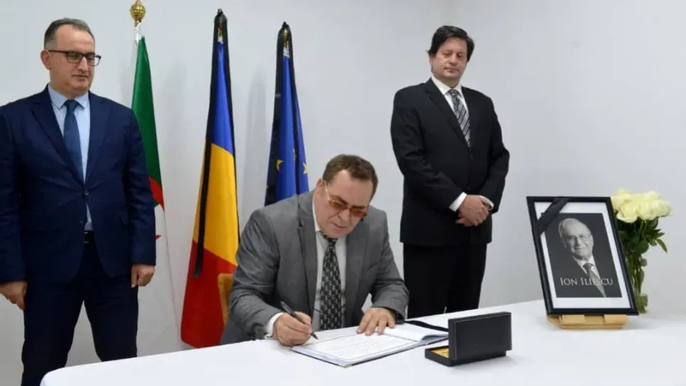 وقّع وزير الاتصال، محمد مزيان، اليوم الخميس، على سجل التعازي بمقر سفارة رومانيا بالجزائر العاصمة، وذلك باسم رئيس الجمهورية، عبد المجيد تبون، إثر وفاة الرئيس الروماني الأسبق، إيون إليسكو.