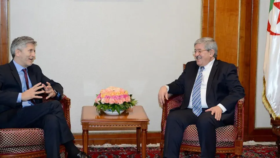 استقبل الوزير الأول أحمد أويحيى اليوم الثلاثاء بالجزائر العاصمة وزير الداخلية الإسباني فرناندو غراندي مارلاسكا غوميز الذي يقوم بزيارة عمل إلى الجزائر، حسبما أشار إليه بيان لمصالح الوزارة الأولى. وقد جرى الاستقبال بحضور وزير الداخلية والجماعات المحلية وتهيئة الإقليم نور الدين بدوي. وكشف الوزير الإسباني لدى وصوله إلى الجزائر عن إرادة الحكومة الجديدة لبلاده في "تعزيز العلاقات الجزائرية الإسبانية أكثر في جميع المجالات" معربا عن "ارتياحه لنوعية التعاون بين البلدين القائم في مختلف القطاعات، لا سيما الداخلية". وأكد مارلاسكا بعد استقباله من طرف بدوي أن إسبانيا ترغب في الاستفادة من الخبرة الجزائرية ف...