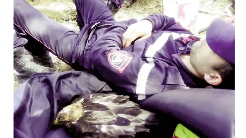 هذه الصورة لعون حماية مدينة بقسنطينة، التقطت له وهو في حالة تعب شديد بعد قضائه ليلة كاملة في مواجهة الحرائق وإخماد ألسنة النيران الملتهبة التي اندلعت بقسنطينة وأتت على الأخضر واليابس، يرقد بالقرب من صقر حاصرته النيران هو الآخر وتمكّن عون الحامية من إنقاذه بعد تقديم الإسعافات الأولية له.