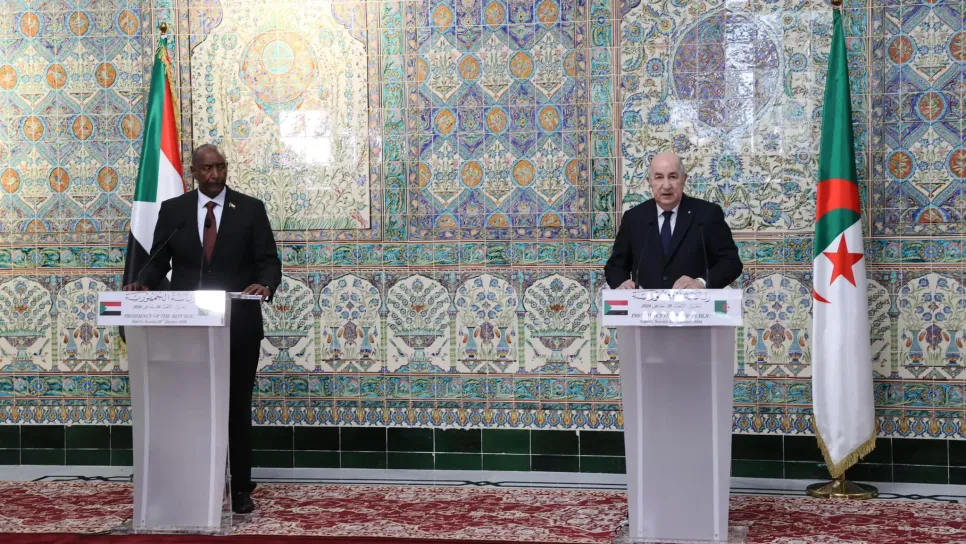 أكد رئيس الجمهورية عبد المجيد تبون ، اليوم الأحد ، أن الجزائر تقف إلى جانب السودان في الأوضاع الصعبة.ومواجهة قوى الشر التي تستهدفه . وقال رئيس الجمهورية خلال ترأسه رفقة رئيس مجلس السيادة الانتقالي لجمهورية السودان الشقيقة عبد الفتاح البرهان عبد الرحمان، محادثات موسعة شملت وفدي البلدين أن الجزائر ستكون حاضرة في أي طاولة نقاش عربية أو إقليمية حتى يتجاوز السودان هذه المحنة. كما أشاد الرئيس تبون بعمق العلاقات المتجذرة التي تجمع الجزائر والسودان.