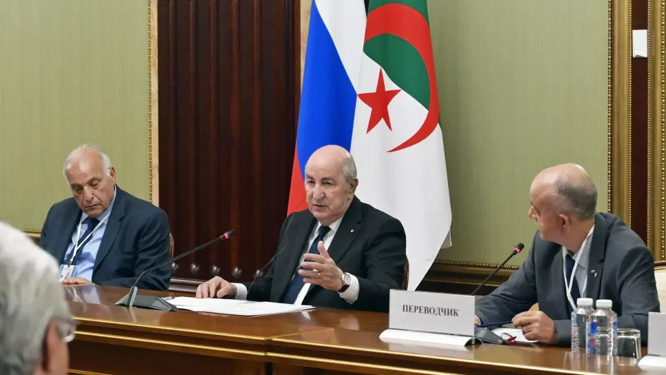 أكد رئيس الجمهورية، اليوم الخميس، على ارتباط الجزائر بعلاقات تاريخية وقوية مع روسيا، مبرزاً أن مواقف الجزائر ثابتة، ومحاولتها تسريع مسار انضمامها إلى منظمة البريكس. وفي محادثات جمعته بنظيره الروسي فلاديمير بوتين، بقصر الكرملين في موسكو، صرّح رئيس الجمهورية: "علاقاتنا تاريخية وقوية مع روسيا وسنعمّق التشاور أكثر حول النقاط التي تهمّنا"، وتابع: "حصول الجزائر على مقعد غير دائم في مجلس الأمن أتى بفضل دعم الأصدقاء وعلى رأسهم روسيا". وركّز رئيس الجمهورية على أنّ "الظروف الدولية لن تؤثر على الصداقة الجزائرية الروسية"، مضيفاً: "مواقفنا ثابتة وتقوم على ضرورة تغليب الحلول السلمية في كل من مالي وليبيا،...