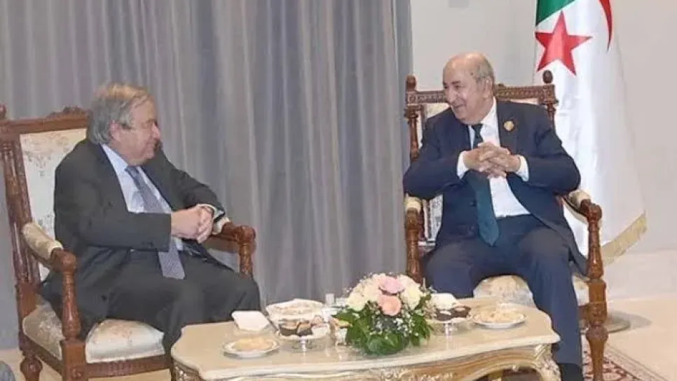 أجرى رئيس الجمهورية، عبد المجيد تبون، اليوم الأربعاء، مكالمة هاتفية مع الأمين العام للأمم المتحدة، أنطونيو غوتيريش، وفق ما جاء في بيان لرئاسة الجمهورية. وحسب ذات المصدر، تطرق الطرفان خلال المكالمة إلى تطورات الأوضاع الأمنية والإنسانية في قطاع غزة، بدولة فلسطين المحتلة.