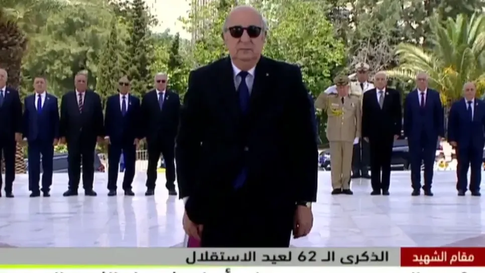 ترحم رئيس الجمهورية، القائد الأعلى للقوات المسلحة، وزير الدفاع الوطني، عبد المجيد تبون اليوم الجمعة بمقام الشهيد بالجزائر العاصمة، على أرواح شهداء الثورة التحريرية المظفرة، وهذا بمناسبة الاحتفالات المخلدة للذكرى الـ62 لعيد الاستقلال والشباب. وقام رئيس الجمهورية بوضع إكليل من الزهور أمام النصب التذكاري المخلد لشهداء الثورة التحريرية المجيدة وقراءة فاتحة الكتاب ترحما على أرواحهم الطاهرة. وكان رئيس الجمهورية مرفوقا بكل من رئيس المجلس الشعبي الوطني، إبراهيم بوغالي، رئيس المحكمة الدستورية، عمر بلحاج، الوزير الأول، نذير العرباوي، رئيس أركان الجيش الوطني، الفريق أول السعيد شنقريحة، ومدير ديوان رئاس...