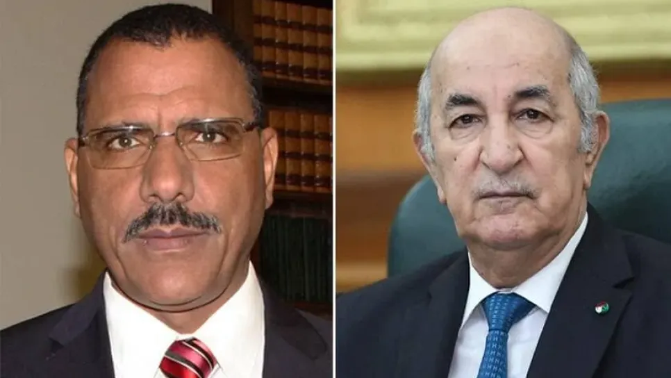 استقبل رئيس الجمهورية عبد المجيد تبون، اليوم الثلاثاء، رئيس جمهورية النيجر محمد بازوم الذي يجري زيارة عمل وصداقة إلى الجزائر. وأفاد بيان رئاسة الجمهورية، أن الرئيس تبون "خصّ رئيس جمهورية النيجر محمد بازوم الذي يقوم بزيارة عمل وصداقة للجزائر، باستقبال رسمي، ببهو قصر الرئاسة وأجرى معه محادثات ثنائية تتمحور حول العلاقات الثنائية بين الجزائر والنيجر، وسبل تعزيزها بما يسهم في تحقيق مصالح الشعبين الصديقين".
