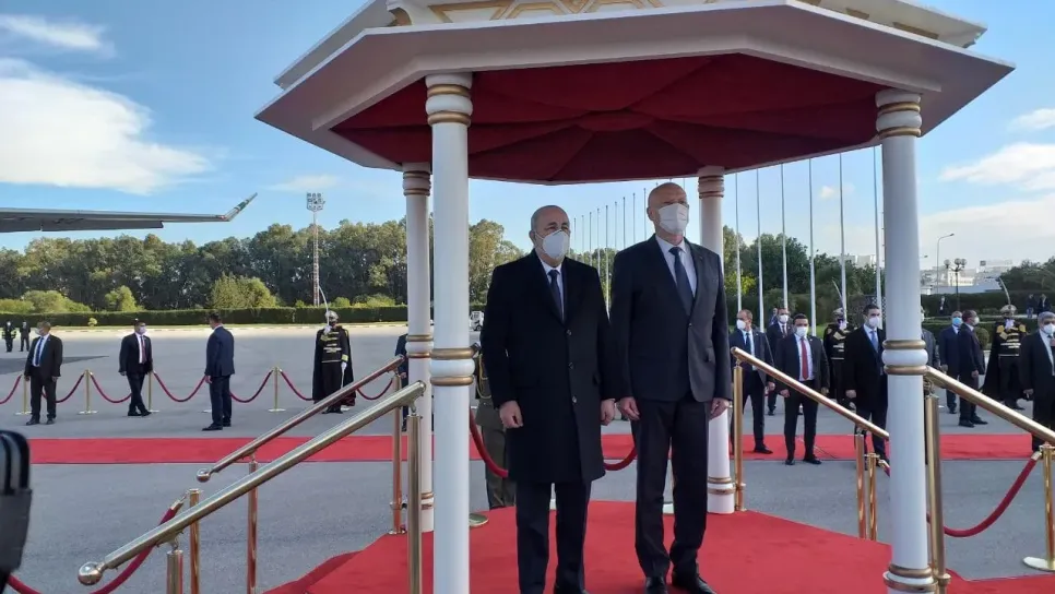 وصل رئيس الجمهورية عبد المجيد تبون، في هذه الأثناء، إلى المطار الدولي قرطاج في زيارة دولة لتونس الشقيقة حسبما كشفت عنه رئاسة الجمهورية. وكان في استقبال الرئيس تبون رئيس الجمهورية التونسية قيس سعيد عند مدرج الطائرة، على دويّ 21 طلقة مدفعية، ترحيباً به. وغادر رئيس الجمهورية، عبد المجيد تبون، اليوم الأربعاء، الجزائر من مطار الجزائر الدولي هواري بومدين، متوجها إلى الجمهورية التونسية الشقيقة، مرفوقا بوفد وزاري هام، في إطار زيارة دولة تدوم يومين، بدعوة من أخيه قيس سعيّد، رئيس الجمهورية التونسية. وكان في توديع الرئيس، الوزير الأول وزير المالية، أيمن بن عبد الرحمان، ورئيس أركان الجيش الوطني الشع...