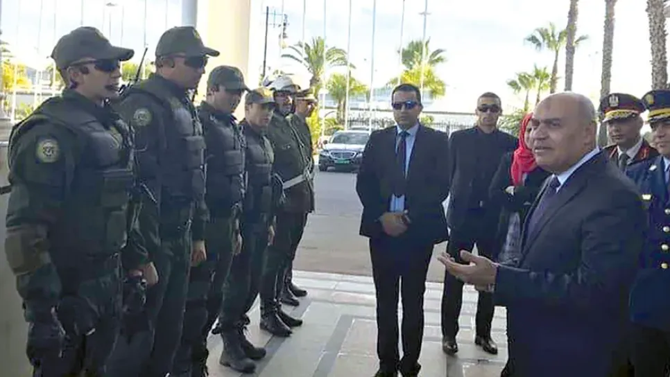 أصر مساعد الرئيس المصري لشؤون الدفاع، الفريق أول صدقي صبحي، أن يتقدم بالتحية والشكر شخصيا وبطريقة رسمية، كما يبدو في الصورة، لطاقم حراسته الجزائري الذي تولى تأمينه والوفد المرافق له خلال المشاركة في جنازة الفريق أحمد قايد صالح، وخلال زيارة إلى الجزائر استمرت يومين. وكلفت فرقة من القوات الخاصة لجهاز الدرك الوطني بمرافقة وتأمين الوفد المصري الذي ضم 5 من كبار ضباط الجيش.