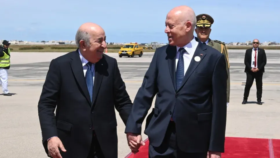 الرئيس الجزائري، عبد المجيد تبون (على اليسار)، رفقة الرئيس التونسي، قيس السعيد، الصورة: ح.م.