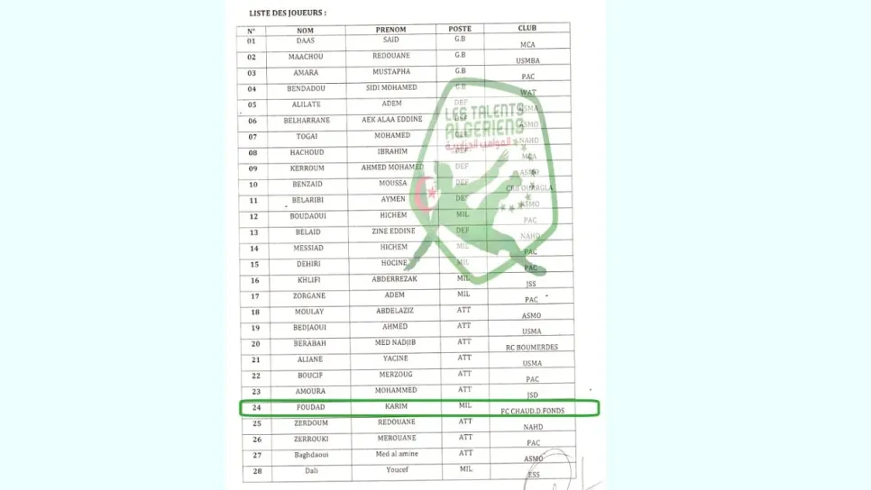 ضمت قائمة المنتخب الوطني لأقل من 20 سنة اسم كريم فداد، وهو “محترف” يلعب في ناد مغمور ينتمي إلى القسم الثالث للبطولة السويسرية. والغريب في الأمر أن لوائح الفيفا لا تلزم اللاعبين الشبان بتلبية دعوة منتخباتهم في تواريخ الفيفا، بل يعود ذلك لموافقة نواديهم فقط، ما يعطي صورة عن قيمة اللاعب المستدعى. وأكثر من ذلك فإن الاسم المدون على قائمة الفاف هو للأب وليس للابن الذي يدعى وائل فداد. فهل تم الاستدعاء لقيمة الابن أم لوزن الأب؟ والفاهم يفهم.