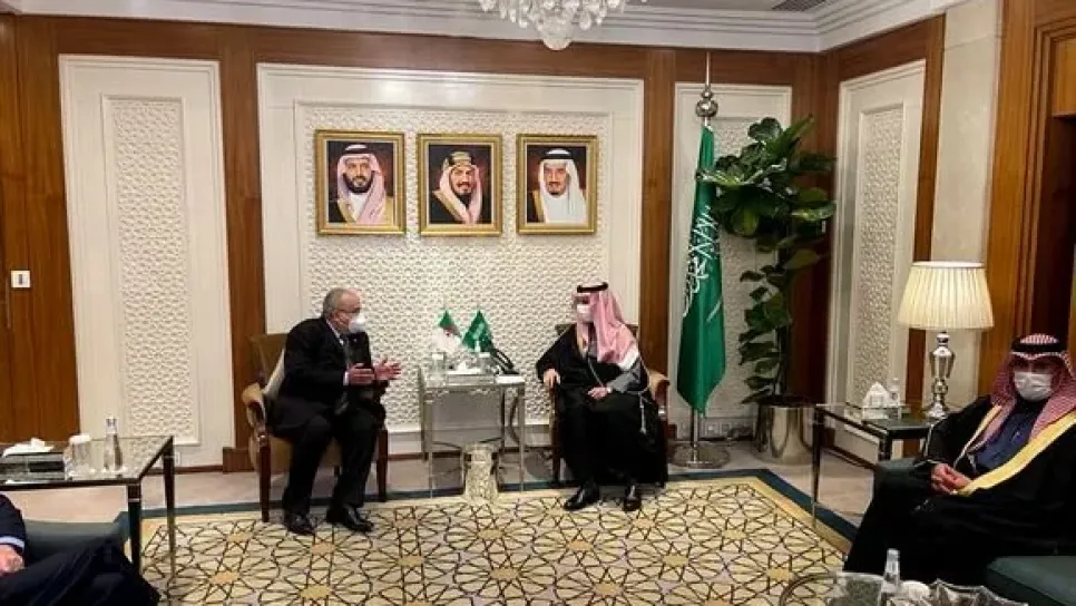 عقد وزير الشؤون الخارجية والجالية الوطنية بالخارج، رمطان لعمامرة، جلسة مباحثات مع نظيره السعودي الأمير فيصل بن فرحان بن عبد الله آل سعود، خلال زيارة العمل التي يقوم بها إلى المملكة العربية السعودية، في إطار آلية التشاور والتنسيق الثنائي على المستوى الوزاري. وأوضح بيان لوزارة الخارجية، اليوم الأربعاء، "وبهذه المناسبة، سلم الوزير لعمامرة لنظيره السعودي رسالة خطية بعث بها الرئيس عبد المجيد تبون، إلى أخيه خادم الحرمين الشريفين الملك سلمان بن عبد العزيز آل سعود". وأضاف، إن المحادثات "تركزت بين رئيسي دبلوماسية البلدين حول علاقات الأخوة والتعاون، وكذا الأوضاع الحساسة التي يمر بها العالم العرب...