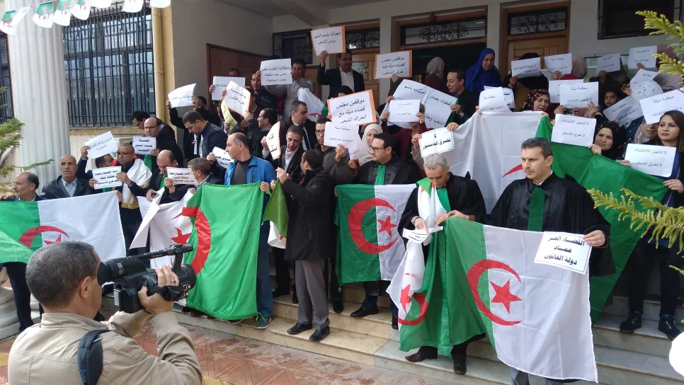 واصل المحامون اليوم الخميس مقاطعة جلسات المحاكم، لليوم الثاني على التوالي، لدعم مطالب الحراك الشعبي الداعية للإصلاحات وللتغيير الجذري للنظام. واصل المحامون مقاطعة جلسات المحاكم بكل من مقر مجلس قضاء الجزائر، وعدة محاكم تابعة له على غرار محكمتي سيدي أمحمد، وباب الوادي (باينام)، وبعض من محاكم ولايات بجاية، تيزي وزو، ميلة، الجلفة، جيجل، وعنابة، استجابة لنداء الاتحاد الوطني لمنظمات المحامين، ودعما لمطالب الحراك الشعبي الداعية لتغيير النظام القائم و"تعزيز الحريات وحماية الحقوق ودعم استقلالية القضاء"، حسبما صرح به عدد من أصحاب الجبة السوداء على مستوى المحاكم. وقد تم تأجيل غالبية الملفات المطر...