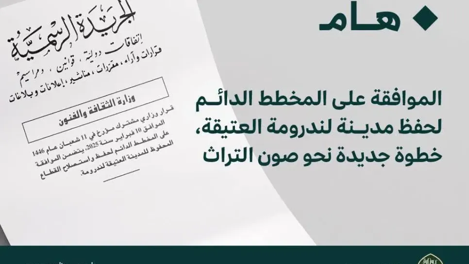 صدر القرار الوزاري المشترك المؤرخ في 10 فيفري 2025، الذي نُشر في العدد 15 من الجريدة الرسمية، والذي يتضمن الموافقة على المخطط الدائم لحفظ واستصلاح القطاع المحفوظ لمدينة ندرومة العتيقة.
