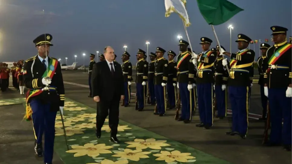 وكان في استقبال الوزير الأول بمطار "بولي" الدولي وزير الابتكار والتكنولوجيا الإثيوبي، بليتا مولى بحضور أحمد عطاف، وزير الدولة، وزير الشؤون الخارجية والجالية الوطنية بالخارج والشؤون الإفريقية، وسفيان شايب، كاتب الدولة المكلف بالجالية الوطنية بالخارج، إضافة إلى سفير الجزائر لدى إثيوبيا، حسب ما أورد بيان لمصالح الوزير الأول.
