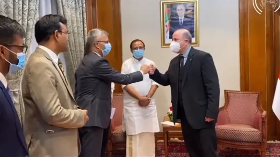 استقبل الوزير الأول، وزير المالية، أيمن بن عبد الرحمان، اليوم الخميس، وزير الدولة الهندي للشؤون الخارجية، شريف. موراليدهاران، الذي يقوم بزيارة عمل إلى الجزائر، حسب ما أفاد به لمصالح الوزير الأول. وقد شكل اللقاء --يضيف البيان-- "فرصة لتبادل وجهات النظر حول واقع وآفاق تعزيز العلاقات الجزائرية-الهندية وتوطيد الشراكات القائمة بين البلدين، لاسيما في المجال الاقتصادي، وذلك بمناسبة الاستحقاقات الثنائية المقبلة".
