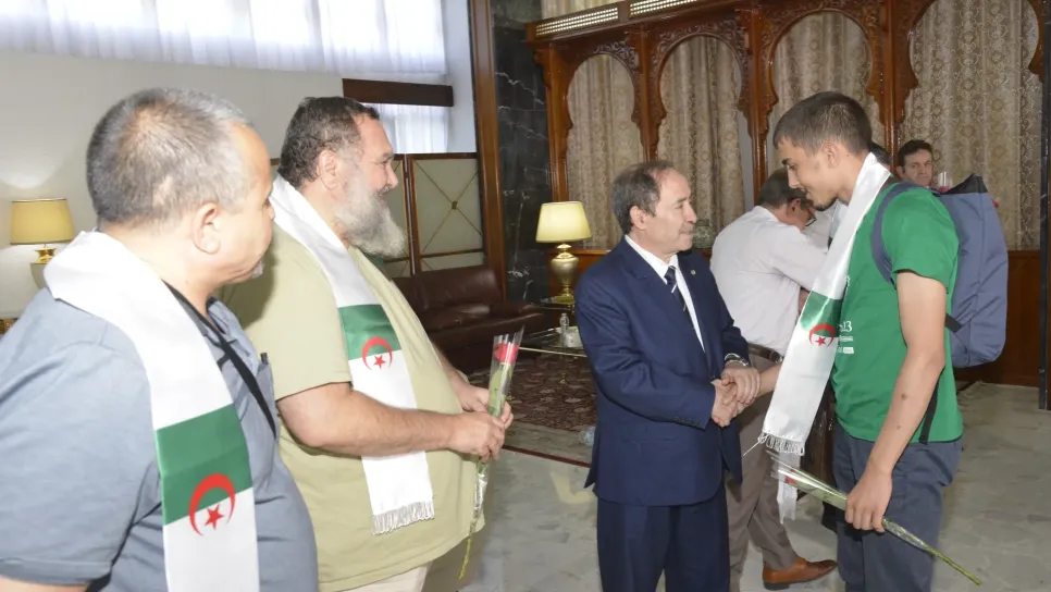استقبل وزير التربية الوطنية, عبد الحكيم بلعابد, اليوم الجمعة بمطار الجزائر الدولي (الجزائر العاصمة), التلاميذ المتوجين في الدورة الـ64 للأولمبياد الدولية للرياضيات التي أقيمت بمدينة "شيبا" اليابانية في الفترة الممتدة من 2 إلى 13 يوليو الجاري. وبالمناسبة، أبرز بلعابد "الأهمية التي توليها السلطات العليا للبلاد وعلى رأسها رئيس الجمهورية، عبد المجيد تبون، لرعاية النخبة المدرسية ومرافقتها"، مشيرا الى أن "النتائج غير المسبوقة التي سجلتها الجزائر خلال مشاركتها هذه السنة في هذه المنافسة إثبات لوجاهة المقاربة والإجراءات المتخذة في هذا المجال". وأضاف أن الجزائر حققت من خلال هذه المشاركة "نتائج غير م...