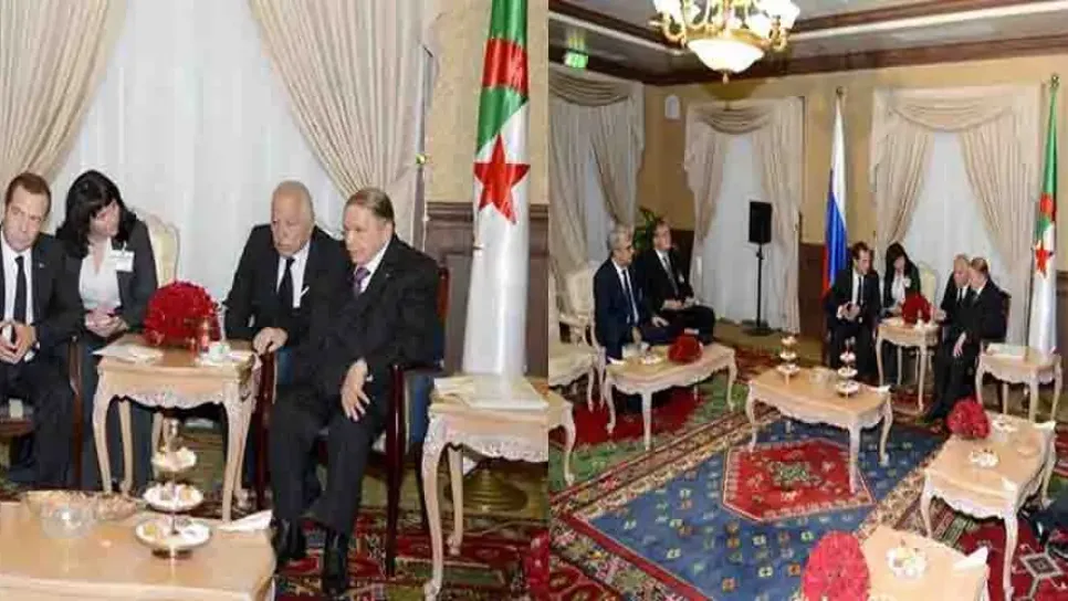 استقبل رئيس الجمهورية, عبد العزيز بوتفليقة, اليوم الثلاثاء بالجزائر العاصمة, الوزير الاول الروسي, دميتري مدفيديف الذي يقوم بزيارة رسمية تدوم يومين إلى الجزائر. وقد جرى الاستقبال بحضور الوزير الأول, أحمد أويحيى, ووزير الشؤون الخارجية, عبد القادر مساهل.  وتشكل هذه الزيارة التي تأتي عقب انعقاد الدورة الثامنة للجنة التعاون المشتركة في سبتمبر المنصرم, فرصة للبلدين لتعميق وتعزيز حوارهما الاستراتيجي وتعاونهما المتعدد الأشكال القائم على إعلان الشراكة الموقع بموسكو في أفريل 2001 بإشراف الرئيس عبد العزيز بوتفليقة ونظيره الروسي, فلاديمير بوتين.