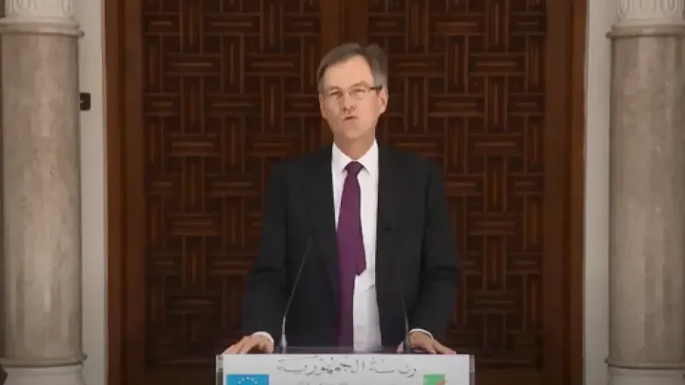 أكد رئيس مفوضية الاتحاد الأوروبي بالجزائر، توماس إيكارت، اليوم الثلاثاء، على أهمية تكثيف علاقات التعاون بين الجانبين (الجزائر والاتحاد الأوروبي) مع ضرورة بحث سبل إضافية لمشاريع جديدة في كافة المجالات. وفي تصريح للصحافة عقب استقباله من طرف رئيس الجمهورية، عبد المجيد تبون، قال إيكارت أن المحادثات مع الرئيس تبون "كانت جد ثرية وتناولت القضايا ذات الاهتمام المشترك بين الجزائر والاتحاد الأوروبي"، مبرزا أن "الأجندة الجزائرية-الأوروبية تطرح الكثير من الفرص لبلوغ علاقات معمقة أكثر في المستقبل". وأشار رئيس مفوضية الاتحاد الأوروبي بالجزائر إلى أنه "تم الاتفاق على تكثيف العلاقات في كافة المجالات، التجار...