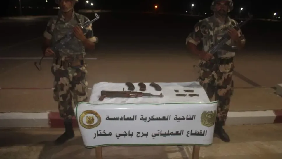تمكنت مفارز للجيش الوطني الشعبي خلال عمليات متفرقة عبر التراب الوطني، من توقيف (03) عناصر دعم للجماعات الإرهابية وكذا كشف وضبط مسدسين (02) رشاشين من نوع كلاشنيكوف و(04) قنابل تقليدية الصنع وكمية من الذخيرة. وأفاد بيان وزارة الدفاع الوطني، أن مفارز لجيش الوطني الشعبي نفذت خلال الفترة الممتدة من 06 إلى 12 سبتمبر 2023، عديد العمليات، حيث أوقفت مفارز مشتركة للجيش الوطني الشعبي، بالتنسيق مع مختلف مصالح الأمن خلال عمليات عبر النواحي العسكرية، (55) تاجر مخدرات وأحبطت محاولات إدخال (04) قناطير و(09) كيلوغرام من الكيف المعالج عبر الحدود مع المغرب، فيما تم ضبط (116773) قرص مهلوس. وبكل من تمنراست وإن ﭭ...