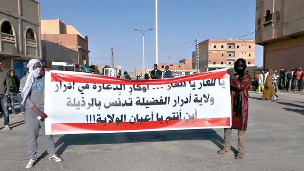 عاشت مدينة أدرار، ليلة أمس، مواجهات دامية بين متظاهرين، أغلبهم شباب من سكان الحي الغربي، الواقع بالمخرج الشمالي للمدينة، وقوات الأمن، بسبب ما وصفوه بتفشي بيوت الدعارة بالحي منذ أكثر من سنة. ودامت المواجهات، التي اندلعت بعد صلاة العصر بين سكان الحي ورجال الأمن، إلى ساعة متأخرة من الليل. جاء تدخل رجال الشرطة بعدما قطع المتظاهرون عددا من الطرق الرئيسية باستعمال الحجارة والمتاريس والعجلات المطاطية المشتعلة، وتواصل التراشق، ما أدى أدى إلى تعرّض بعض أفراد الشرطة للرشق بالحجارة، نتج عنها إصابة أحد رجال الأمن استدعى نقله إلى المستشفى في حالة خطيرة، فيما تعرّضت سيارات ومحلات تجارية لأض...