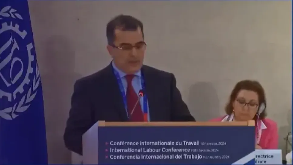 تطرق وزير العمل والتشغيل والضمان الاجتماعي، فيصل بن طالب، اليوم الخميس من جنيف السويسرية، إلى "الوضع المأساوي" الذي يعيشه العمال الفلسطينيون وأفراد أسرهم في قطاع غزة، جراء الممارسات الهمجية للكيان الصهيوني ضد الشعب الفلسطيني. وجاء في بيان للوزارة، أن بن طالب الذي يشارك في أشغال الدورة الـ112 لمؤتمر العمل الدولي على رأس وفد ثلاثي التشكيلة يضم ممثلين عن الحكومة وعن العمال وأرباب العمل، بحضور أطراف العمل الثلاثة يمثلون أكثر من 180 دولة حول العالم، تطرق إلى "الوضع المأساوي الذي يعيشه العمال الفلسطينيون وأفراد أسرهم في قطاع غزة، جراء الأوضاع الكارثية الاقتصادية والاجتماعية والإنسانية في قطاع غزة،...