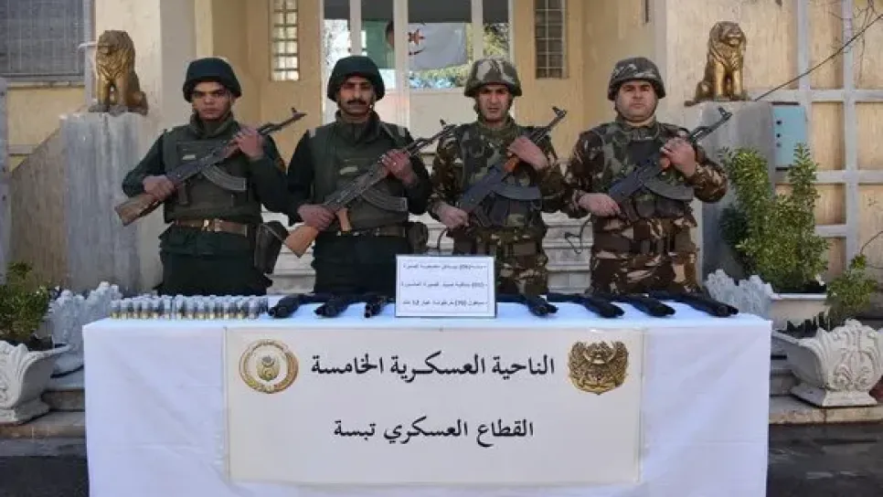 وجاء في نص البيان أنه "في إطار محاربة الجريمة المنظمة، وبفضل استغلال المصالح الأمنية للجيش الوطني الشعبي لمعلومات تفيد بنقل وإدخال كمية من الأسلحة عبر حدودنا الشرقية، تمكنت يوم أمس الأربعاء 26 فيفري 2025، مفرزة مشتركة لقوات الجيش الوطني الشعبي، بمنطقة فيض عامر واد المنصورة بإقليم القطاع العسكري تبسة بالناحية العسكرية الخامسة، من اكتشاف وحجز ستة (06) بنادق مضخية، بندقية (01) صيد، وكمية من الذخيرة".