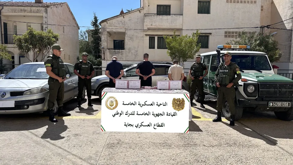 أوقفت مفارز للجيش الوطني الشعبي عناصر دعم للجماعات الإرهابية، في عمليات متفرقة عبر التراب الوطني، خلال الفترة الممتدة من 11 إلى 17 سبتمبر 2024. وأفاد بيان لوزارة الدفاع الوطني، اليوم الأربعاء، بأنه "تم توقيف 53 تاجر مخدرات وإحباط محاولات إدخال قنطارين و32 كيلوغراما من الكيف المعالج عبر الحدود مع المغرب، كما تم ضبط 3.22 كيلوغرامات من مادة الكوكايين و235495 قرص مهلوس". من جهة أخرى، أضاف المصدر ذاته "تمكنت مفارز تابعة للجيش الوطني الشعبي، من توقيف 456 شخص بكل من تمنراست وبرج باجي مختار وإن صالح وإن ڤزام وإليزي، وضبط 22 مركبة و203 مولد كهربائي و184 مطرقة ضغط و4 أجهزة كشف عن معادن، بالإضافة إلى...