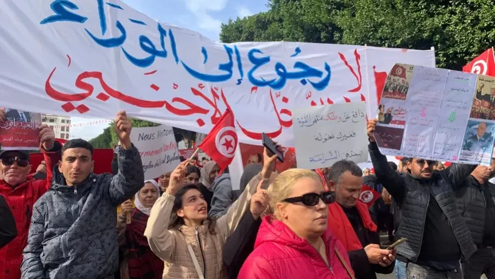 وشهدت العاصمة التونسية، الأربعاء، مظاهرة حاشدة نظمها موالون ومؤيدون للرئيس قيس سعيد، قدموا من كل الولايات للتعبير عن رفض التدخلات الأجنبية، واستقواء بعض قوى المعارضة بالخارج وخاصة بالاتحاد الأوروبي، ورفعت خلال المظاهرة، صور الرئيس سعيد وشعارات كتب عليها ما يفيد بالدعوة إلى محاربة الفساد ومحاسبة الفاسدين وتطهير الساحة التونسية من التدخلات والتمويل الأجنبي.