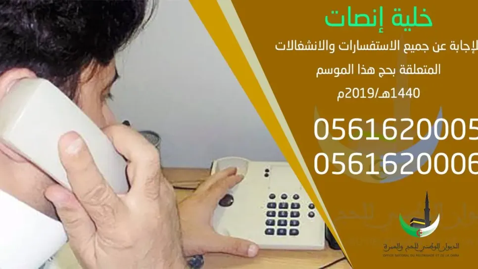 كشف الديوان الوطني للحج والعمرة، اليوم الثلاثاء، عن تشكيل خلية إنصات، للإجابة عن جميع استفسارات حجاج هذا الموسم. وأوضح الديوان عبر صفحته الخاصة "فايسبوك"، أن خلية الإنصات، موجهة للحجاج الميامين لموسم 1440هـ/2019م من أجل الإجابة عن انشغالاتهم. وأضاف ذات المصدر، أنه تم تخصيص أرقام هاتفية للتواصل: 0561620005 0561620006