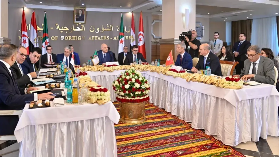 احتضنت الجزائر، صبيحة اليوم الاجتماع الوزاري لآلية دول الجوار الثلاثية بشأن الأزمة في ليبيا، وذلك بمشاركة وزير الدولة، وزير الشؤون الخارجية والجالية الوطنية بالخارج والشؤون الإفريقية، أحمد عطاف، ووزير الخارجية والهجرة وشؤون المصريين بالخارج لجمهورية مصر العربية، بدر عبد العاطي، ووزير الشؤون الخارجية والهجرة والتونسيين بالخارج للجمهورية التونسية، محمد علي النفطي.