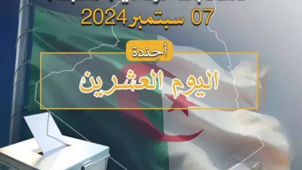 تدرك الحملة الانتخابية لرئاسيات 7 سبتمبر يومها العشرين والأخير، وتتمثل أجندة اليوم في: - تجمع شعبي لمرشح جبهة القوى الاشتراكية، يوسف أوشيش، بقاعة الأطلس في بلدية باب الوادي، بالجزائر العاصمة (14.00). - تجمع شعبي للمترشح الحر، عبد المجيد تبون، بالقاعة البيضاوية للمركب الأولمبي "محمد بوضياف"، بالجزائر العاصمة. - تجمع شعبي لمرشح حركة مجتمع السلم، عبد العالي حساني شريف، بقاعة حرشة حسان في الجزائر العاصمة (14.00). - &n...