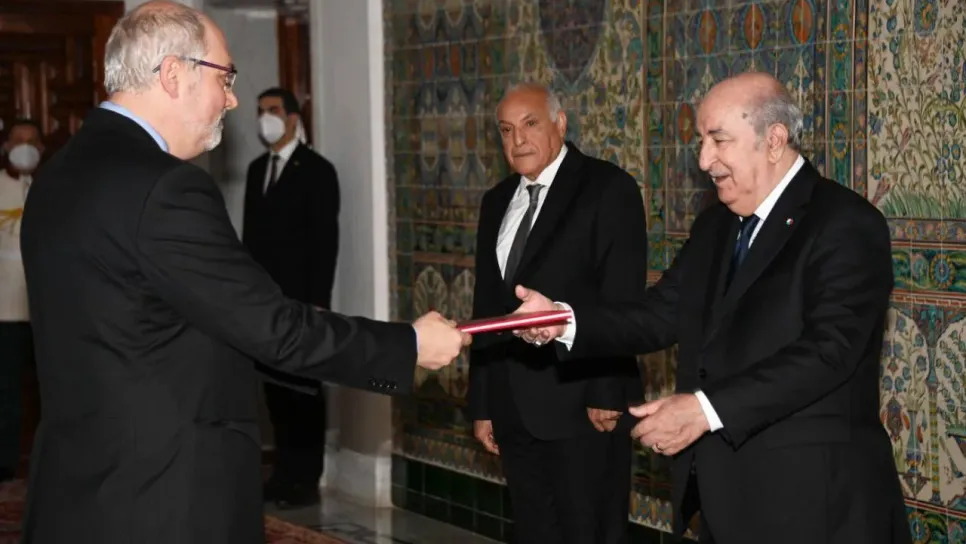 تسلم رئيس الجمهورية، عبد المجيد تبون، اليوم الثلاثاء، أوراق اعتماد سفراء عدة دول. وحسب بيان رئاسة الجمهورية فإن الأمر يتعلق بكل من سعادة السيدة فيلومينا ميلي، بصفتها سفيرة لجمهورية مالطا، سعادة السيدة إليزابيت موغيراسوني، بصفتها سفيرة لجمهورية بورندي، سعادة السيد يان تشيرني، بصفته سفيرا لجمهورية التشيك وسعادة السيد تران كوك كانه، بصفته سفيرا لجمهورية فيتنام الاشتراكية. ووفق ذات المصدر حضر مراسم تسلم أوراق الاعتماد وزير الشؤون الخارجية والجالية الوطنية بالخارج، أحمد عطاف، ومدير ديوان رئاسة الجمهورية، النذير العرباوي.