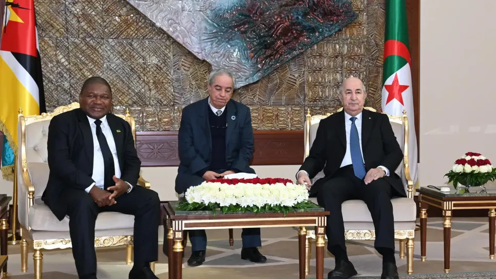 أجرى رئيس الجمهورية عبد المجيد تبون، اليوم الخميس، محادثات ثنائية موسعة مع نظيره الموزمبيقي، فيليب خاسينتو نيوسي، الذي يقوم بزيارة صداقة وعمل إلى الجزائر. وقد جرت المحادثات بمقر رئاسة الجمهورية بحضور أعضاء وفدي البلدين. وقد حضر هذه المحادثات عن الجانب الجزائري وزير الشؤون الخارجية والجالية الوطنية بالخارج أحمد عطاف، وزير الداخلية والجماعات المحلية والتهيئة العمرانية إبراهيم مراد، وزير الطاقة والمناجم محمد عرقاب، وزير الفلاحة والتنمية الريفية يوسف شرفة، و وزير المجاهدين وذوي الحقوق العيد ربيقة. وقبل ذلك، كان رئيس الجمهورية قد أجرى محادثات على انفراد مع نظيره الموزمبيقي. كما جرت أيضا محادثات...