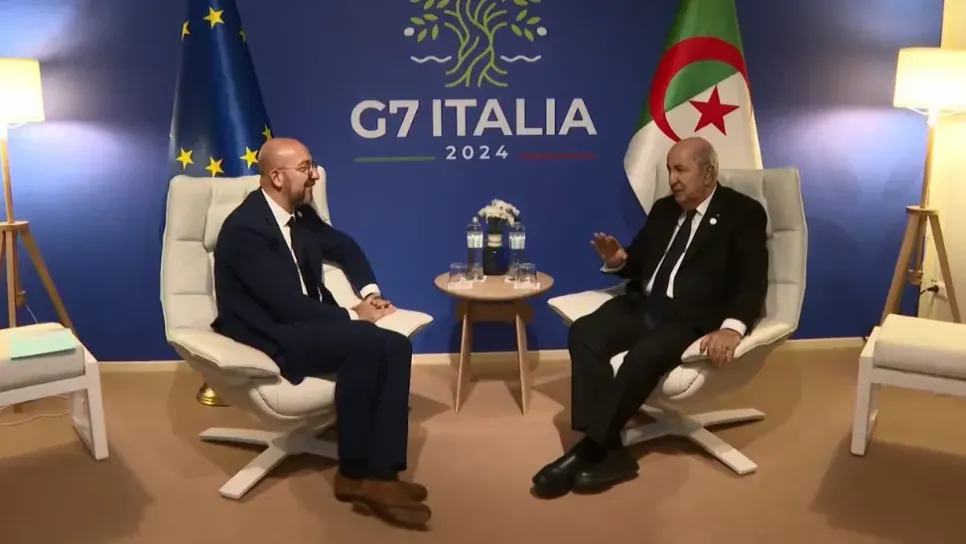 استقبل رئيس الجمهورية، عبد المجيد تبون، اليوم الجمعة بباري الإيطالية، رئيس المجلس الأوروبي، شارل ميشال. وجاء اللقاء على هامش مشاركة رئيس الجمهورية في أشغال قمة مجموعة السبع لكبار المصنعين في العالم.