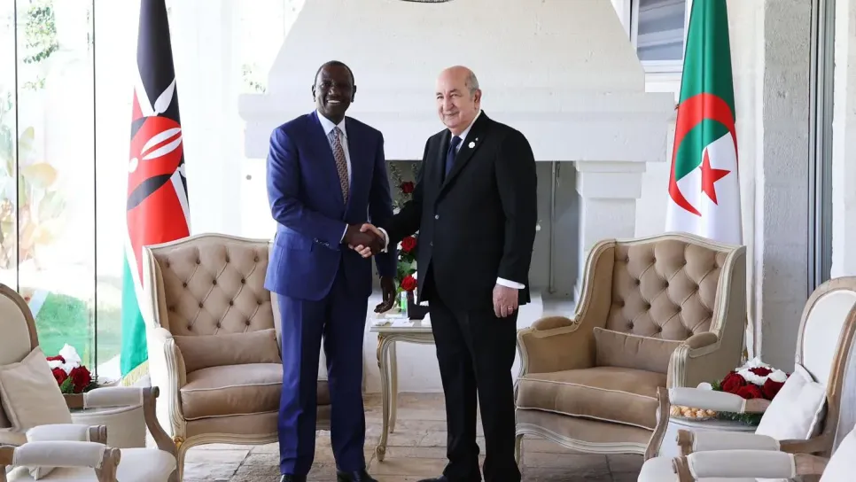 استقبل رئيس الجمهورية عبد المجيد تبون بمقر إقامته في باري الإيطالية رئيس جمهورية كينيا وليام روتو. وكان رئيس الجمهورية قد حل أمس الخميس بمدينة باري الإيطالية للمشاركة في قمة مجموعة السبع لكبار المصنعين في العالم التي تنعقد من 13 إلى 15 جوان الجاري وتأتي مشاركة رئيس الجمهورية في هذه القمة تلبية لدعوة من رئيسة مجلس وزراء جمهورية إيطاليا، جورجيا ميلوني. ويشارك رئيس الجمهورية، عبد المجيد تبون، هذا الجمعة بمدينة باري (ايطاليا) في قمة مجموعة السبع لكبار المصنعين في العالم، بنشاط مكثف، حيث من المقرر أن يلقي خطابا ويجري عدة لقاءات مع قادة كبار في العالم.