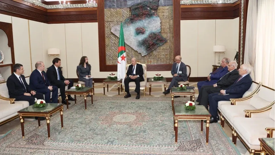 وحضر اللقاء مدير ديوان رئاسة الجمهورية، بوعلام بوعلام، وزير الدولة وزير الشؤون الخارجية والجالية الوطنية بالخارج والشؤون الإفريقية، أحمد عطاف، ومستشار لدى رئيس الجمهورية مكلف بالشؤون الدبلوماسية، عمار عبة، حسب ما ورد في بيان لرئاسة الجمهورية.