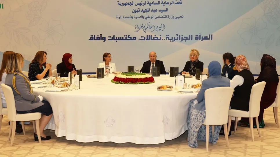 كرم رئيس الجمهورية، عبد المجيد تبون، اليوم الخميس بالجزائر العاصمة، نخبة من النساء الجزائريات اللائي أثبتن تميزهن في العديد من المجالات الحيوية والإبداعية، وذلك خلال إشرافه على حفل بمناسبة اليوم العالمي للمرأة. ونظم حفل التكريم بالمركز الدولي للمؤتمرات "عبد اللطيف رحال" تحت شعار "المرأة الجزائرية.. نضالات، مكتسبات وآفاق"، وهذا بحضور كبار المسؤولين في الدولة وأعضاء من الحكومة، إلى جانب مجاهدات وشخصيات نسوية. وبالمناسبة، كرم رئيس الجمهورية بشهادات تقدير كلا من نهاد بوسلامة معامشة (بروفيسور في مجال الإيكولوجيا والبيئة)، زياني رقيوع جميلة (بروفيسور في الطاقات المتجددة)، خليل آمال (بروفيسور في...