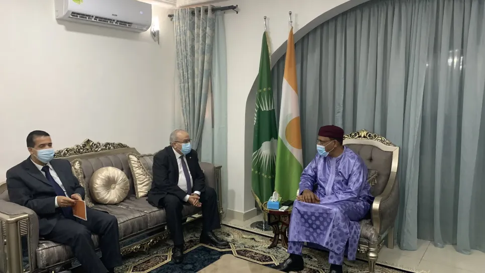 التقى اليوم الأحد، وزير الخارجية والجالية الوطنية بالخارج، رمطان لعمامرة، بالرئيس النيجري محمد بازوم، في نيامي في زيارة عمل. وقال لعمامرة عبر حسابه الرسمي "تويتر"، أنه "تشرفت اليوم بلقاء الرئيس محمد بازوم فور وصولي إلى نيامي في زيارة عمل. مشاورات ثرية حول العلاقات الثنائية الاستراتيجية وسبل ترقيتها وكذا حول التعاون المتعدد الأطراف خدمة لأهداف السلم والأمن والاستقرار في المنطقة. كما تشاورنا حول أهم مستجدات الأوضاع في المنطقة وعلى المستوى القاري".