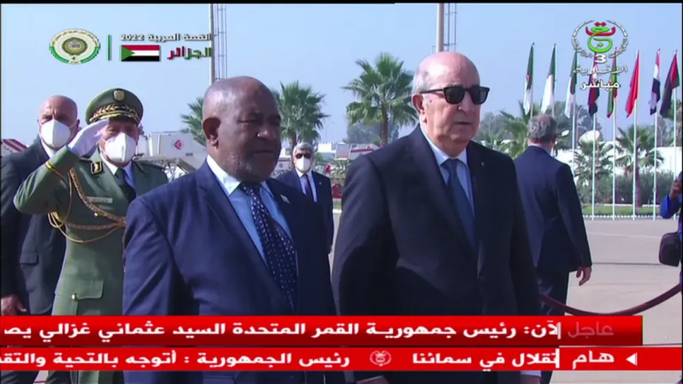 حلّ رئيس جمهورية القمر المتحدة عثماني غزالي، اليوم الإثنين، للمشاركة في أشغال الدورة العادية الـ 31 لجامعة الدول العربية المنعقدة بالجزائر. وكان في استقبال عثماني غزالي لدى وصوله إلى مطار الجزائر الدولي، رئيس الجمهورية عبد المجيد تبون.