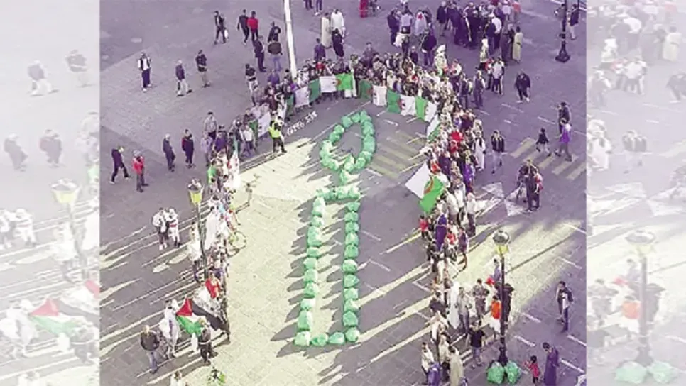ختام مسيرة الجمعة رقم 15 الحراك الشعبي، ارتأى أبناء عنابة تشكيل رسم بأكياس النفايات جمعوها، عبارة عن شمعة، ورافقوا المبادرة صفحة الدراجة الخضراء.