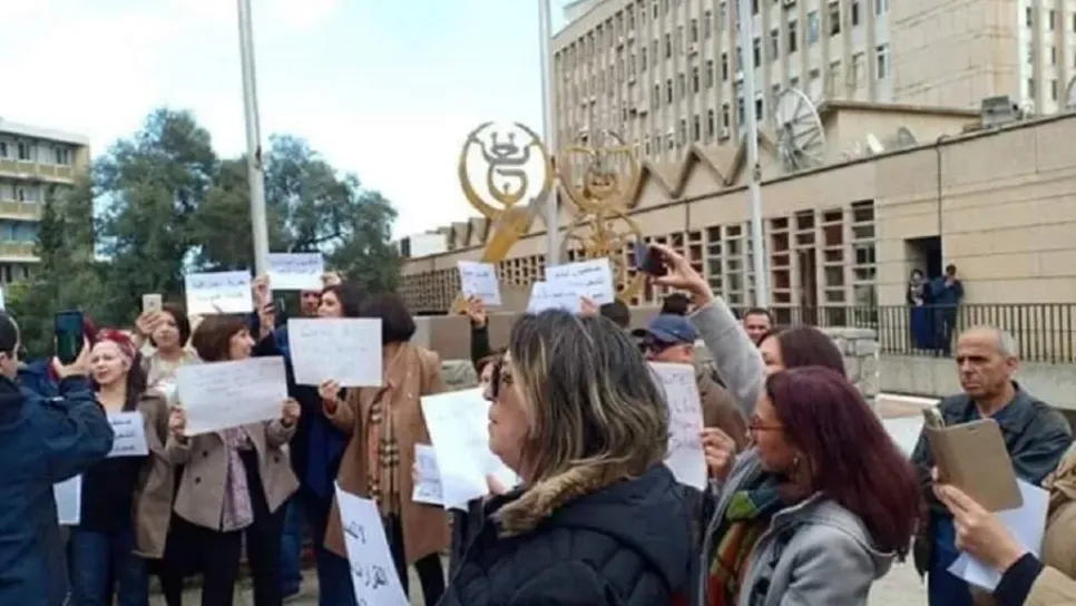 نظم صحافيو المؤسسة العمومية للتلفزيون الجزائري، اليوم الإثنين، وقفة احتجاجية، مطالبين بحرية الصحافة، بشعار "تلفزة عمومية ماشي استمرارية".