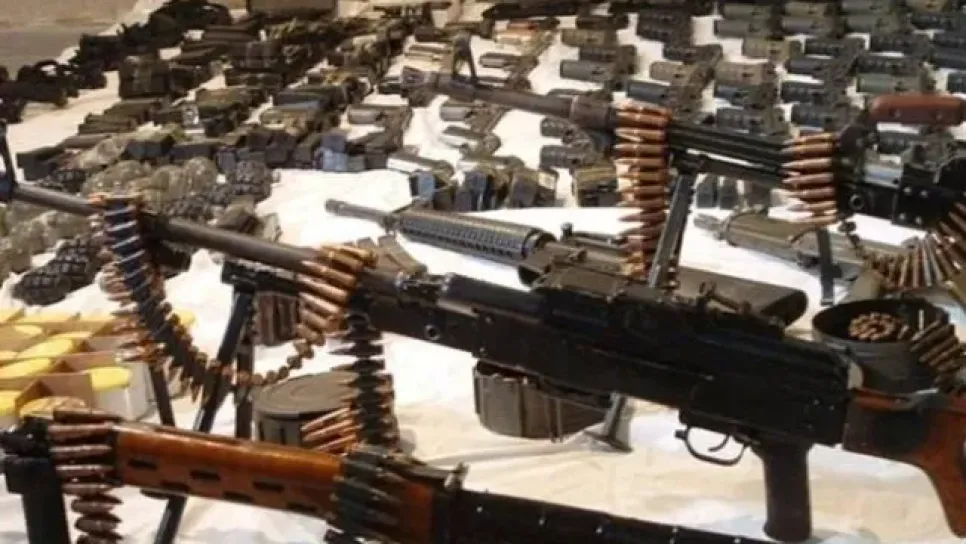تمكنت مفرزة للجيش الجزائري في أدرار، صباح اليوم، من ضبط كمية كبيرة من الأسلحة والذخيرة. وأوضح بيان لوزارة الدفاع الوطني، اليوم:"في إطار مكافحة الإرهاب، تمكنت مفرزة للجيش الوطني الشعبي تابعة للقطاع العملياتي لأدرار/ن.ع.3، صباح اليوم 06 نوفمبر 2016، من ضبط كمية كبيرة من الأسلحة والذخيرة، تتمثل فيما يلي: الأسلحة: - (20) مسدسا رشاشا من نوع كلاشنيكوف. (02) - بندقيتين نصف آليتين من نوع سيمونوف. الذخيرة: - (28) قنبلة يدوية،- (17) صاروخ عيار 57 ملم خاص بالحوامات.- (01) سلّة لإطلاق الصواريخ خاصة بالحوامات.- (20) مخازن ذخيرة متنوعة.- (27) مشعل خاص بالقنابل اليدوية. - بالإضافة إلى (20...