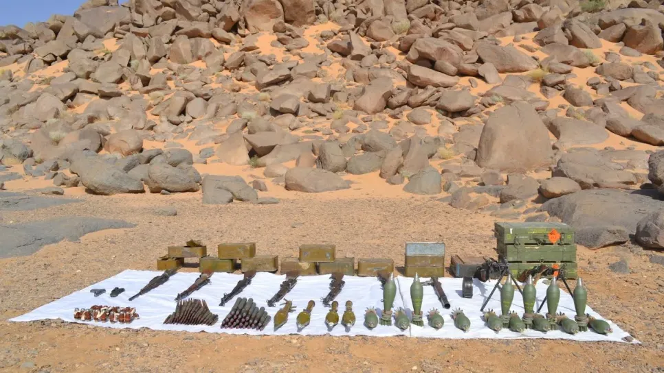 تمكنت مفرزة للجيش الوطني الشعبي اليوم الجمعة إثر دورية قرب الشريط الحدودي ببرج باجي مختار بإقليم الناحية العسكرية السادسة، من ضبط كمية من الأسلحة والذخيرة، تتمثل في: - (02) رشاش متوسط من نوع RPK ، - (01) قادف صاروخي من نوع RPG2، - (03) بندقية نصف آلية من نوع سيمونوف ، - (03) مسدس رشاش من نوع MAT-44، - (01) مسدس ألي من نوع ماكاروف. - بالإضافة إلى كمية معتبرة من القذائف والذخيرة من مختلف العيارات.