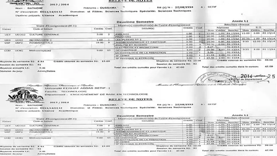 تفاجأ أحد الطلبة بكلية العلوم والتكنولوجيا، بجامعة الباز بسطيف، بورود اسمه في قائمة الناجحين، رغم أنه تلقى إشعارا بفشله في اجتياز امتحانات السنة الأولى، وبالتالي قام بإعادة السنة. وبعد مرور 9 أشهر كاملة، تستدعيه إدارة الكلية لتقول له بكل بساطة “أنت من الناجحين.. لماذا أعدت السنة؟”. يوجد الطالب أسامة بطاش في حالة نفسية صعبة للغاية، فقد حرم من سنة كاملة من مشواره الدراسي لمجــــــــــــــــرد أن إدارة الجامعــــــــــــة وقعت في إهمـــــــــال كبير لا يتحــــــمّل مسؤولــــيته تماما. وبحكم حداثة سنه، لم يجد من ينصفه سوى صفحات جريدة “الخبر”، فقد أكد في حديثه أن إدارة معهد...