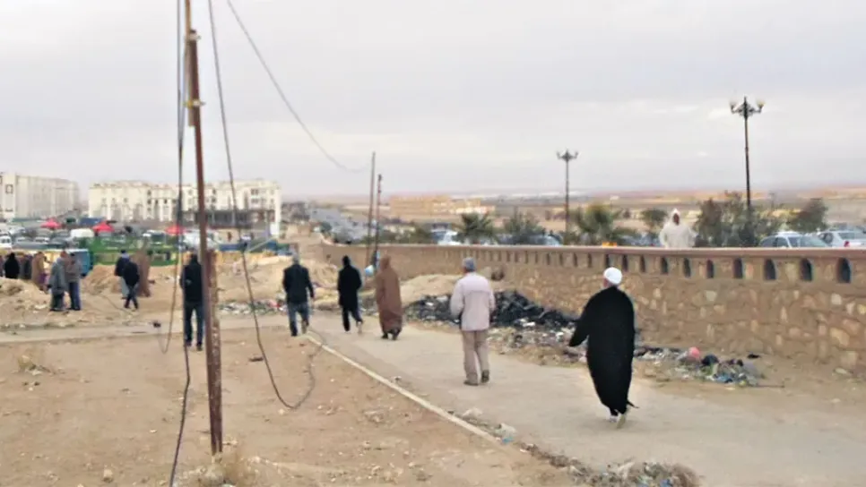 الأسلاك الكهربائية الظاهرة في الصورة تم تمديدها عشوائيا فوق أعمدة خشبية وأخرى أرضا لمسافة طويلة، تزود النقطة الأمنية التي تتوسط الطريق الوطني رقم 40 ب بجوار السوق الأسبوعي لمدينة عين وسارة بالجلفة، وكذا السكنات الاجتماعية والسجن، وتم ربط هذه الأسلاك من العداد الخاص بالإنارة العمومية، ما أصبح يشكل خطرا على حياة المتسوقين وحتى الراجلين نظرا لتواجد الأسلاك في الأرض.