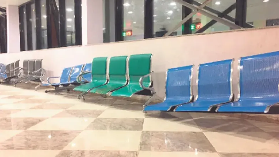 على هذه الكراسي من المفروض أن يجلس الأولياء الذين ينقلون أبناءهم للتداوي في مستشفى كناستل لطب الأطفال في وهران. لكن تظهر في الصورة ”قاعة الانتظار” مهجورةً لأن الناس لا تتنقل إلى هذا المستشفى للتزحلق على الكراسي وإنما لعلاج أبنائهم.