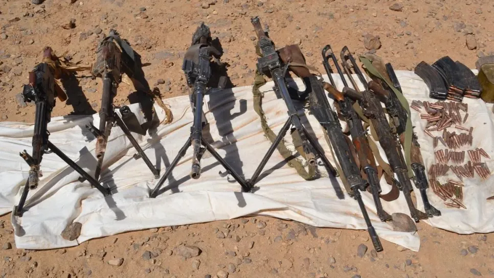 كشفت مفرزة للجيش الوطني الشعبي أمس الأحد على مخبأ أسلحة بتمنراست يحتوي على أربع بنادق رشاشة من نوع FM وثلاث اسلحة من نوع كلاشنيكوف وبندقية قناصة وكمية معتبرة من الذخيرة، حسب ما جاء في بيان لوزارة الدفاع الوطني اليوم الاثنين. وجاء في البيان " كشفت مفرزة للجيش الوطني الشعبي تابعة للقطاع العملياتي لتمنراست بإقليم الناحية العسكرية السادسة، يوم 28/02/2016، لمخبأ أسلحة يحتوي على أربع (04) بنادق رشاشة من نوع FM وثلاث (03) مسدسات رشاشة من نوع كلاشنيكوف وبندقية قناصة وكمية معتبرة من الذخيرة من مختلف العيارات تقدر بـ(1715) طلقة".
