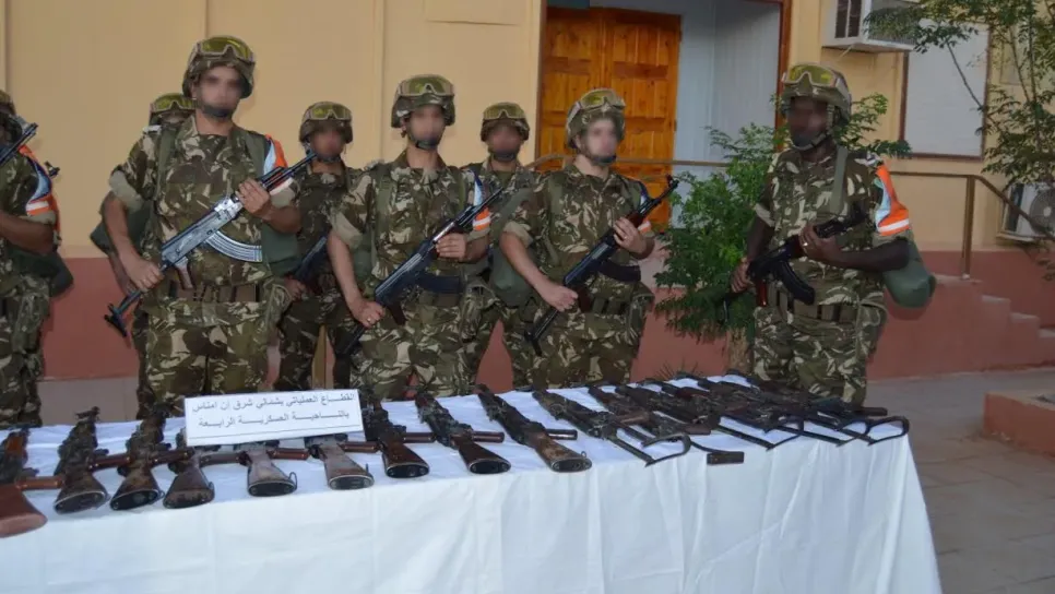 تمكنت مفرزة مشتركة من القطاع العملياتي لإن أمناس أمس الثلاثاء من كشف مخبأ يحوي كمية ضخمة من الأسلحة والذخيرة قرب الحدود الجنوبية-الشرقية للبلاد بالدبداب، ولاية إيليزي، حسب ما جاء في بيان لوزارة الدفاع الوطني. مكنت هذه العملية من ضبط: - قاذف صاروخي RPG-7 -18 مسدسا رشاشا من نوع كلاشنيكوف - قذيفتان RPG-7 - 18 قنبلة يدوية - 4 مخازن ذخيرة.